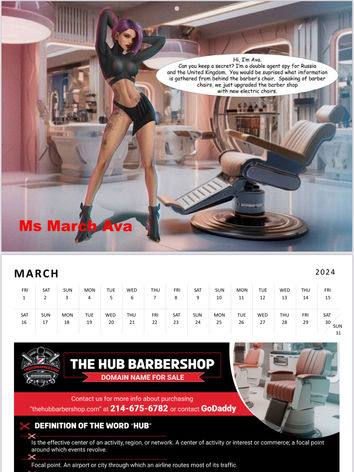 The Barber's Calendar is a fresh but classic form of Branding & Advertising. These Comic Book Art Barber Vixens are created to target the Barber and Beauty Industry and also other complementary businesses to gain market share for their organizations.